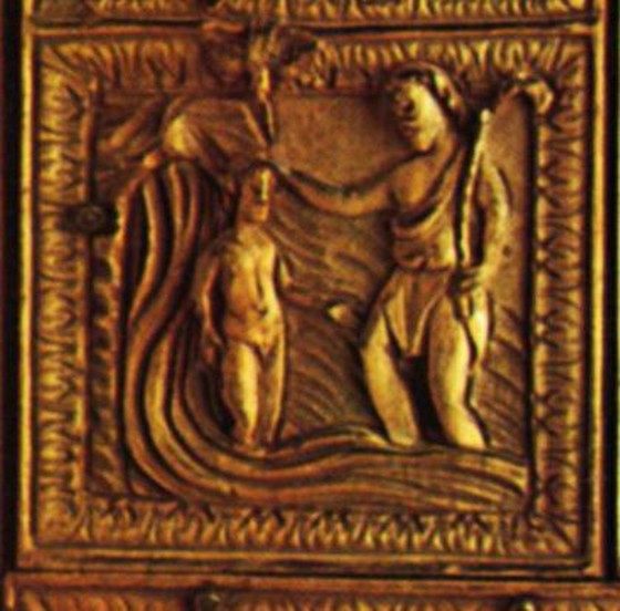სახარების მოჭედილობა. დუომოს საგანძური, მილანი, იტალია. ფრაგმენტი. V ს. 2-